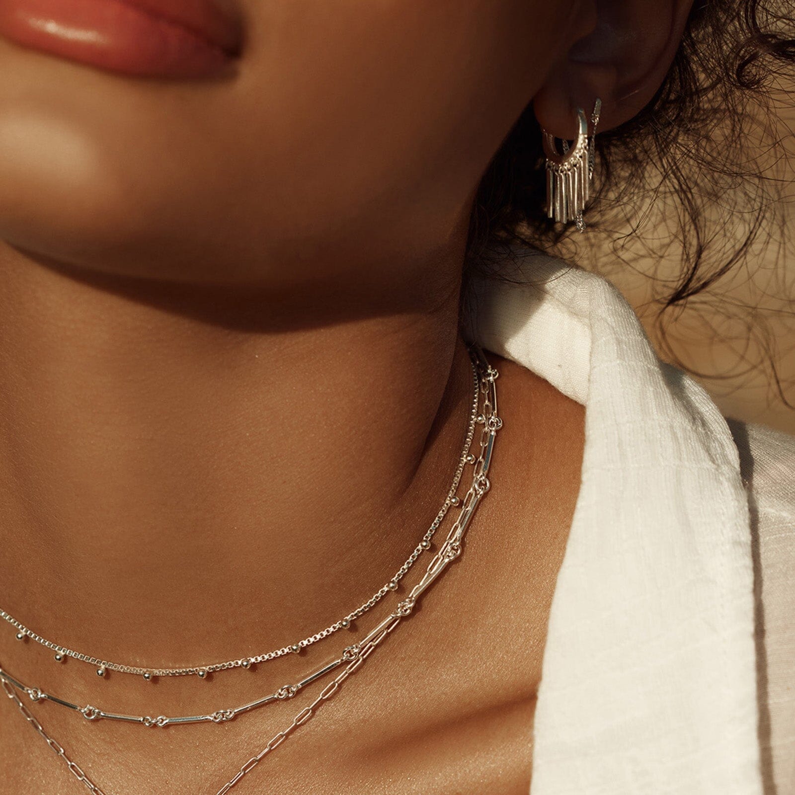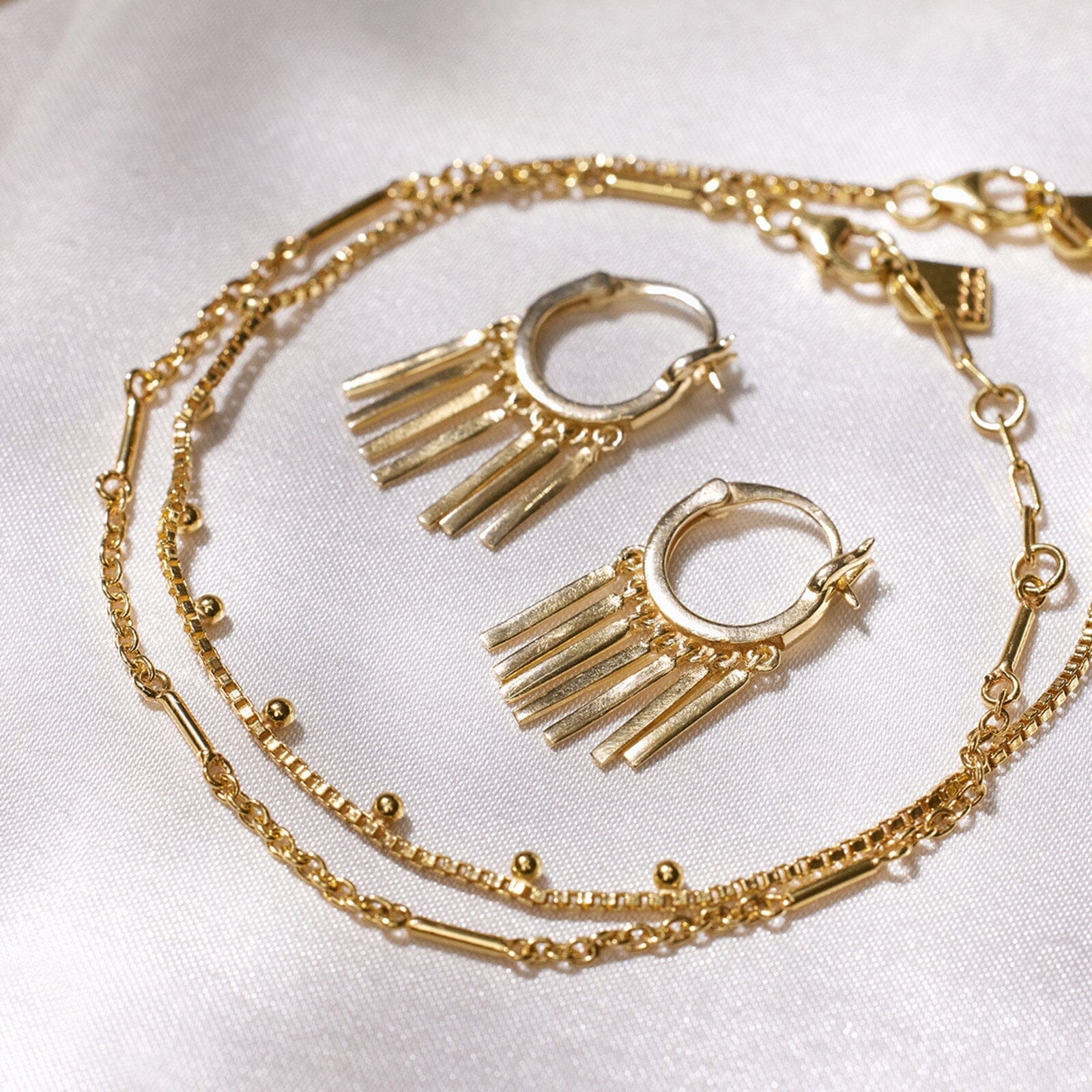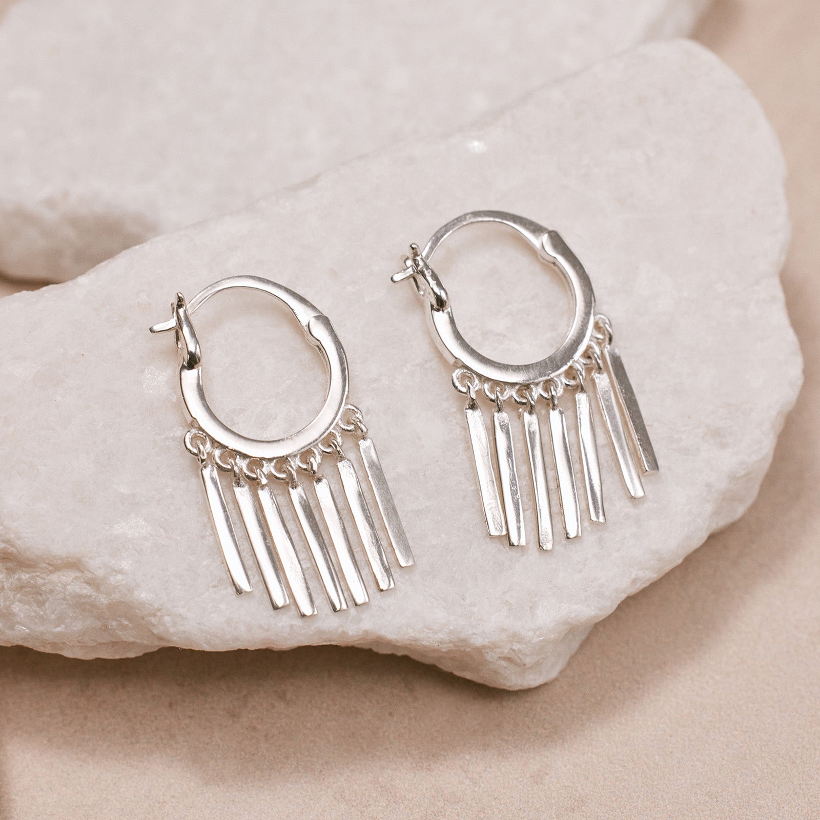 Bohemian meets sophisticated with these Fringe Huggies, featuring a mini hoop with metal fringe pieces layered across the piece – perfect for adding some flare to your look!