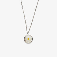 - Brass base with rhodium plating and dried daisy pattern in resin