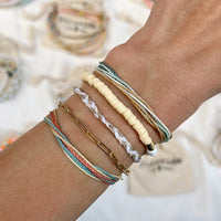 Salty hair, sandy toes, and sun-soaked vibes — the Beach Life Pack was made for your endless summer days. Warm tones mixed with ocean-inspired blues bring that laidback, barefoot energy wherever you go. Stack it up and wear the beach with you — no matter where you are.
