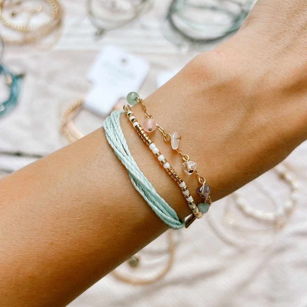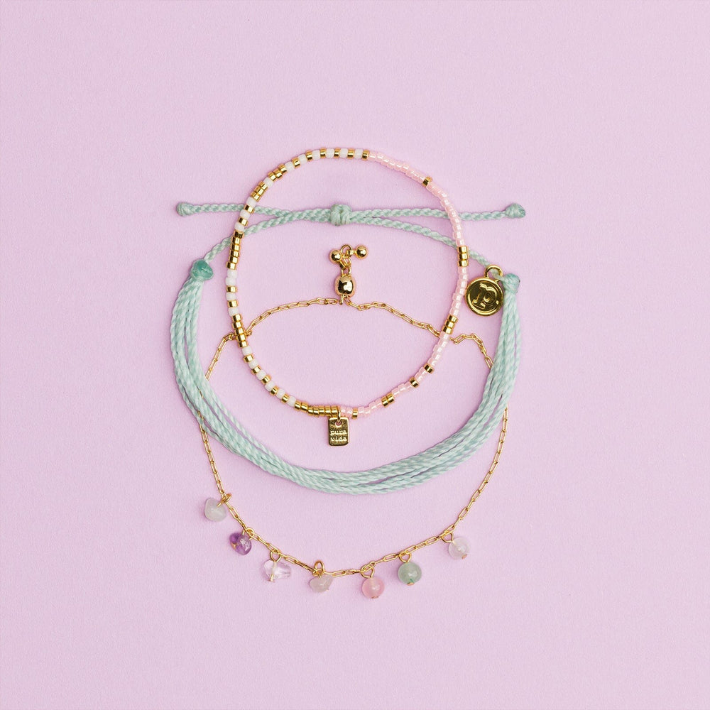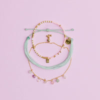 Dive into style with the Bermuda Pack! This playful trio features a gold and pink stretch bracelet for that sunny glow, an ocean gem charm bracelet that adds a whimsical touch, and a light blue sting bracelet perfect for chill days. Layer them up or wear solo—either way, you’re ready to rock those tropical vibes!