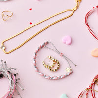 Love is in the air—as in, you’ll love our Besos Braided Bracelet. Shimmering silver string weaves in with shades of white and pink, making it the perfect style to add to your Valentine’s Day stack.