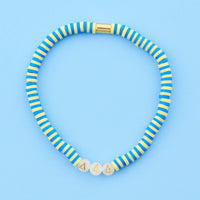 - Made with colorful vinyl disc beads on a durable elastic cord that stretches to fit most wrists