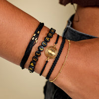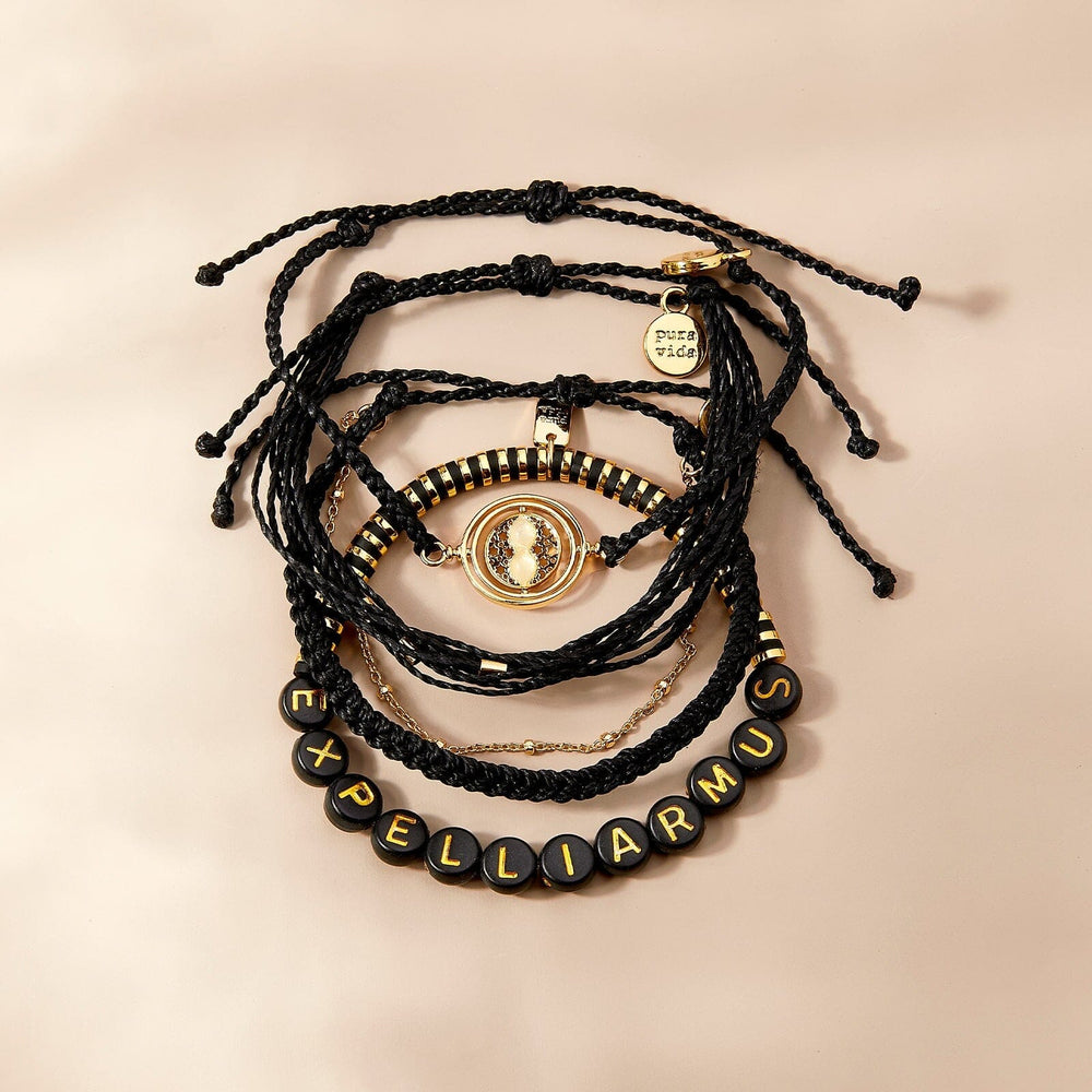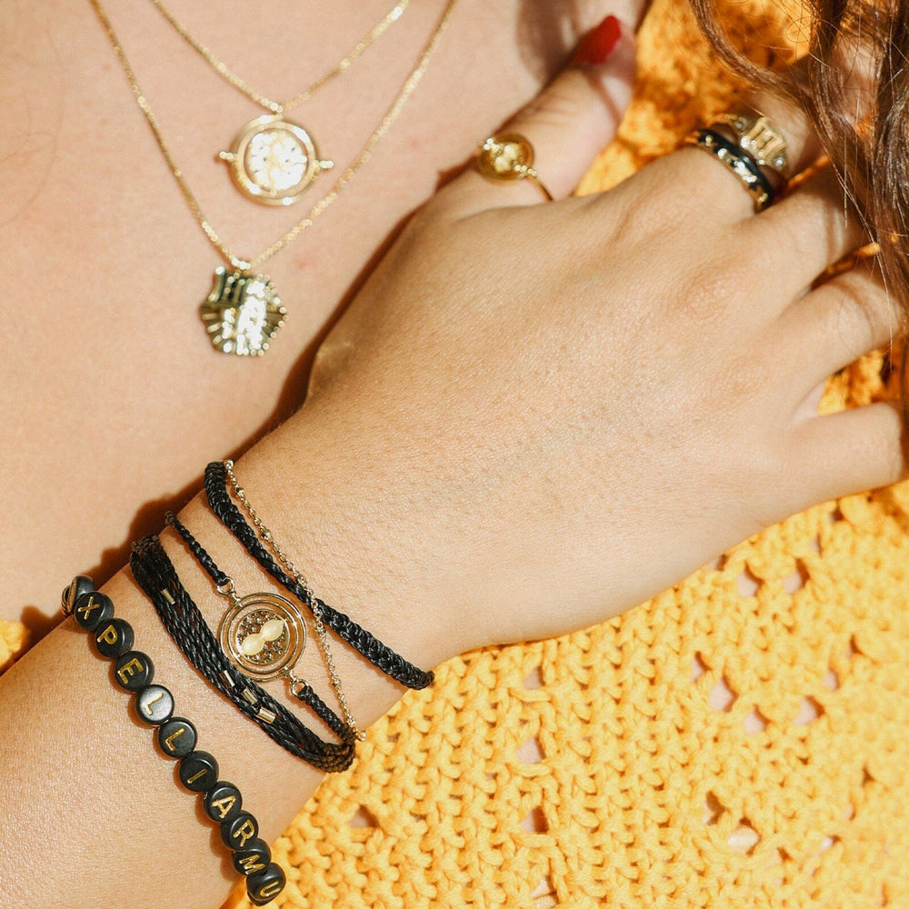 Our Expelliarumus Style Pack makes quite the charming stack! This four-piece set features a gold-studded Malibu bracelet, a slip-on “Expelliarmus” design, a braided band with a time-turner charm, and a layered string-and-chain style. For every style pack sold, Pura Vida will donate 5% of the purchase price to the World Literacy Foundation, with a maximum donation of $25,000. Your donations will help further the World Literacy Foundation’s mission to ensure that every child—regardless of geographic location—has the opportunity to acquire literacy skills and books to reach their full potential!