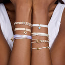 The classic friendship bracelet—leveled up. The Friendship Cord Bracelet features a chunkier braided design in bold, juicy color combos (Blueberry, Creamsicle, Sorbet... need we say more?). It’s got a sturdy pull-tie closure that keeps things comfy and secure, plus shiny gold-tone accents for that little extra glow-up.