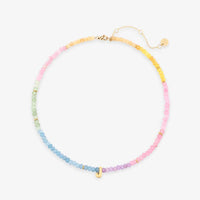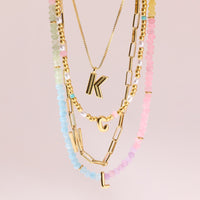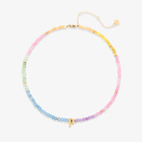 Show off your letter, your way. This pastel-perfect choker features ombré stone beads and a bold gold initial that’s all about standing out. Waterproof and ready for anything—just like you.Waterproof
