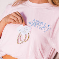 The Kappa Delta collection brings together soft greens, creamy whites, and golden details for stacks that feel classic and cool. Whether you’re celebrating a new sister, leveling up your rush ‘fit, or just repping KD on the daily, these pieces are here for it. Giftable, layerable, and made to last—because true friendship never fades.