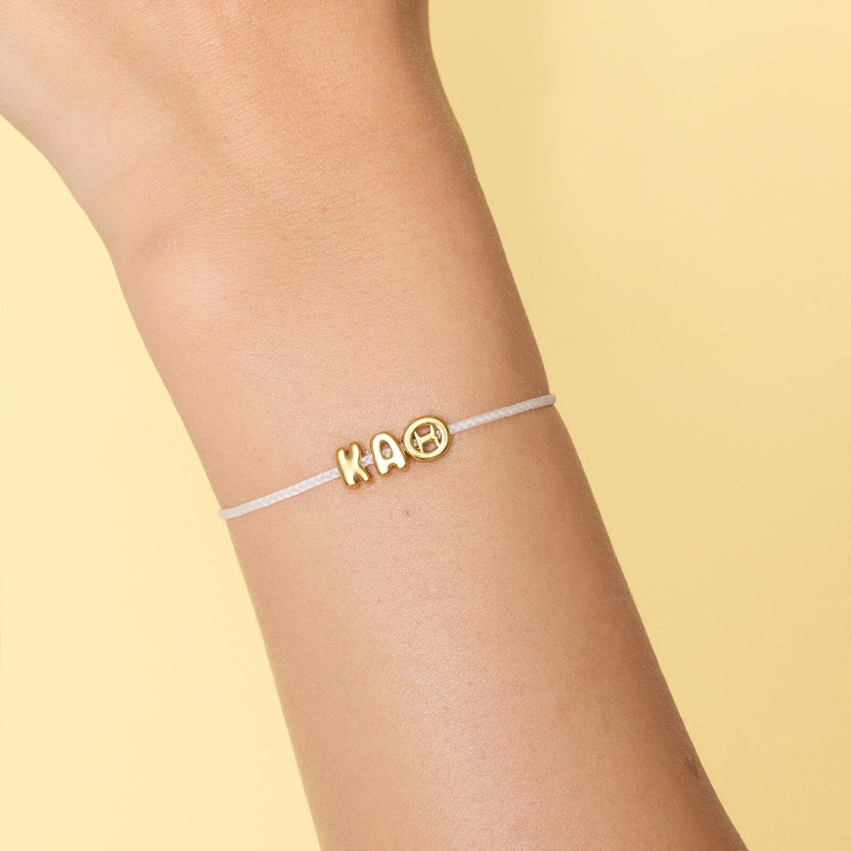 - Features bubble-style Greek letters with a stainless steel base and IP gold plating