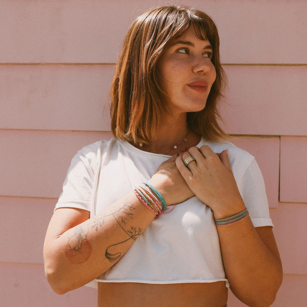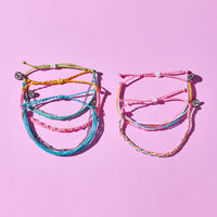 This bold bracelet pack was made for carefree days and salty hair energy. With five vibrant string styles and glimmering metal accents, it's perfect for mixing, matching, and making a splash. Waterproof, lightweight, and totally vibe-approved for your next seaside adventure.