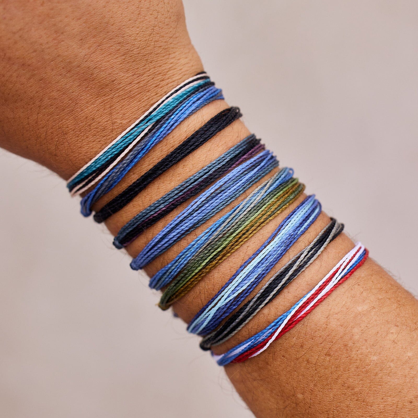 Save 31% on bracelets by purchasing our Men's Surf & Skate Friendship Pack ($70 value), featuring 10 of our top selling originals! Wear them all together, mix and match your favorite combinations or share with your friends. Each one is handmade, waterproof and totally unique—in fact, the more you wear it, the cooler it looks.