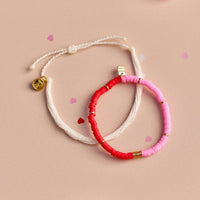 Pink and Red Vinyl Disc Bead Stretch Bracelet Set