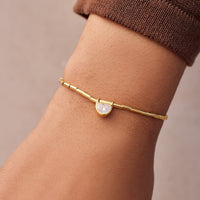 Texture and movement inspired by the softness and serenity of a coastal lifestyle. The Stone Slider Bracelet dons tube beads that meet at a bezel-set, half-moon stone and an adjustable snake chain to customize your fit. Available in both silver and gold.