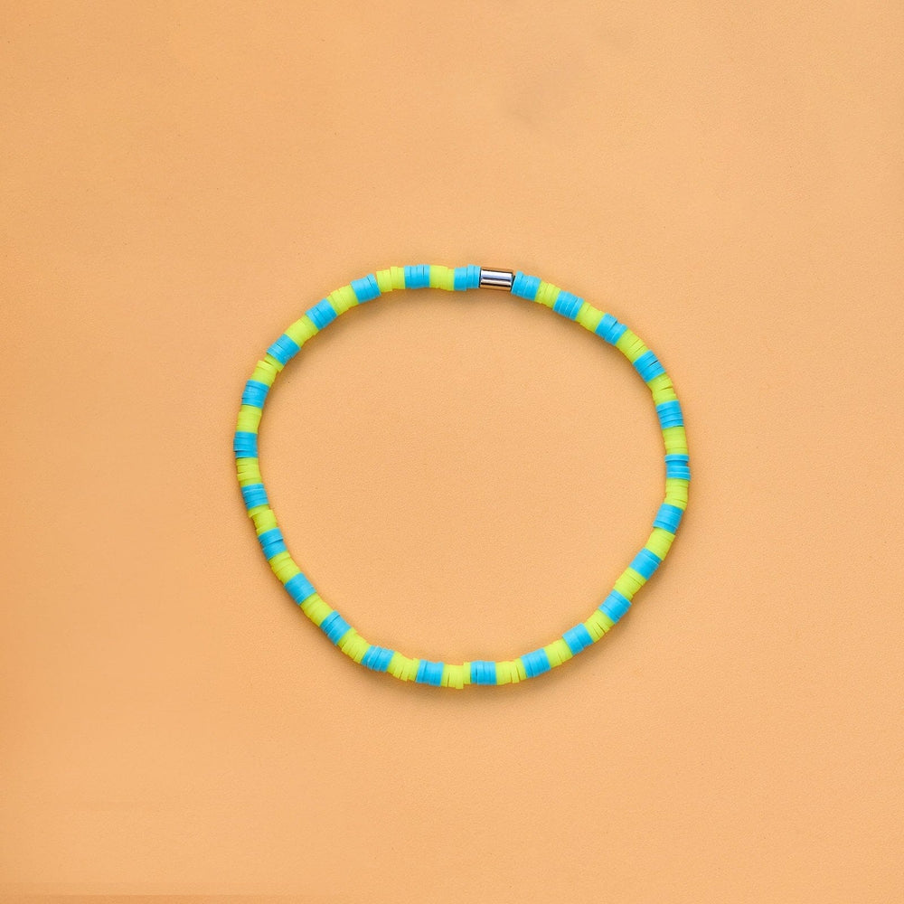 Get ready to stand out with our Yucca Seascape Stretch Anklet. Tailored for those who love to make a statement, this anklet radiates beachy vibes and carefree energy! Crafted with vibrant neon colors, it's a bold accessory that commands attention. Made with vinyl discs and a durable elastic chord, it's not only stylish but also comfortable for all-day wear. Simply slip it on and watch your outfit come to life!
